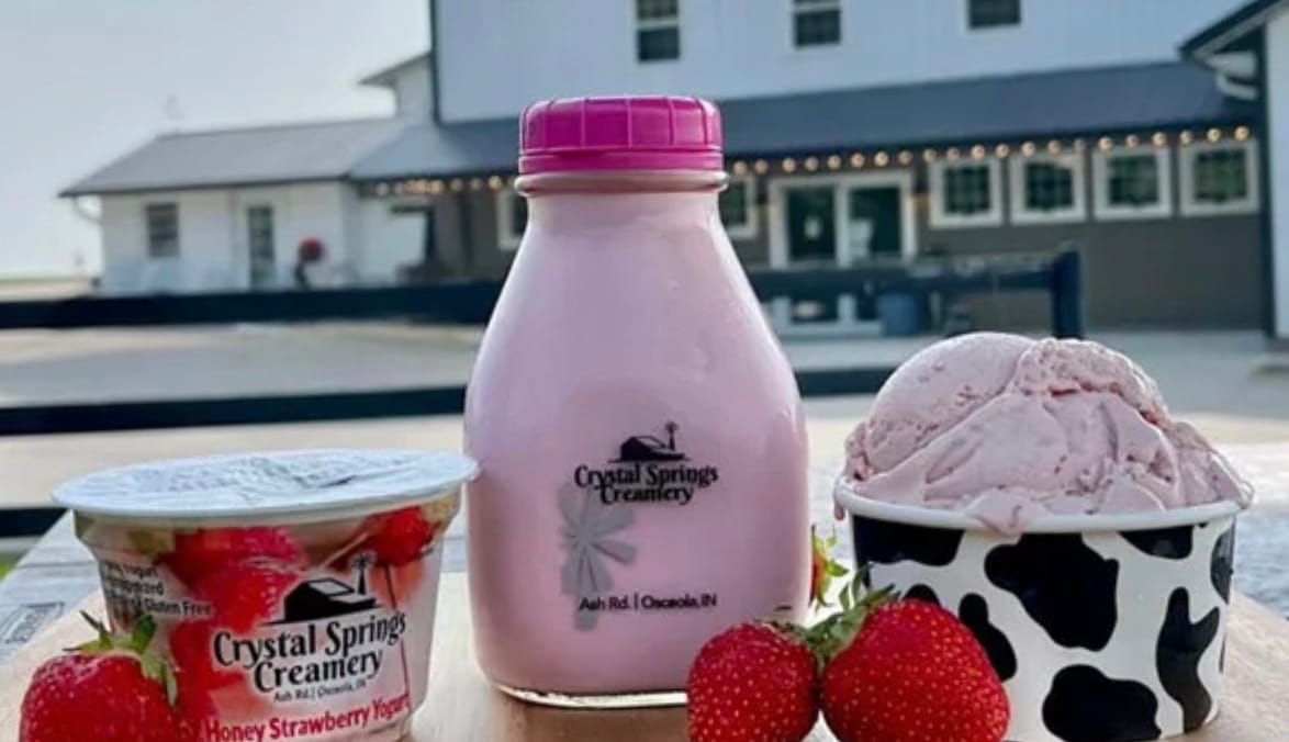 About: “Crystal Springs Creamery is a family-owned dairy farm in Osceola, Indiana, committed to producing fresh, high-quality dairy products. Since launching our glass-bottled milk in 2019 and farm-fresh ice cream in 2022, we've proudly grown, milked, and crafted our cheese, yogurt, and milk right on-site. Our small-batch, minimally processed products are made with care from cows that are never treated with growth hormones or rBST, and are fed a homegrown diet of alfalfa, corn, and grass. From our farm to your table, we’re passionate about providing delicious, nutritious dairy for your family.”